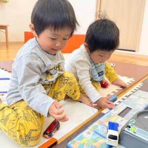 服もお揃いで、トミカに夢中☆