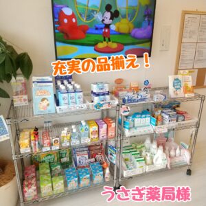 調剤だけでなく、子育てママパパに嬉しい物品販売も充実しています。