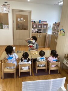 お熱が高くてしんどいお友だちも一緒にペープサートを見ました。
