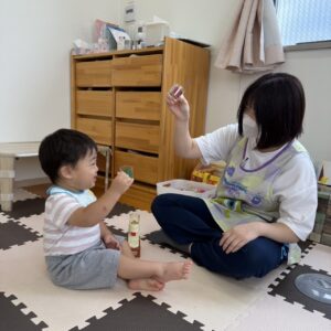 先週、食事の時間にお米を完食したお友だちが「おいしかったー!」「こめ!こめ!こめ!」と言う姿がありました。