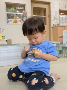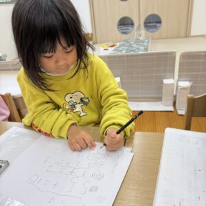クレヨンを上手に持って、ぐるぐる~とお絵描きをしていました。
