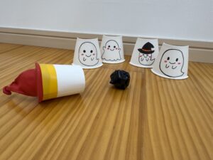 今月の製作は、ハロウィンの紙コップ鉄砲!