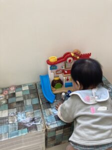 お部屋にあるおもちゃに興味津々な様子でした。