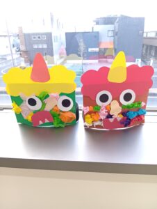 つむぎのおうちでもたくさんの鬼のお面が完成しました。