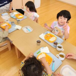 たくさん遊んだら、給食もおいしいね!