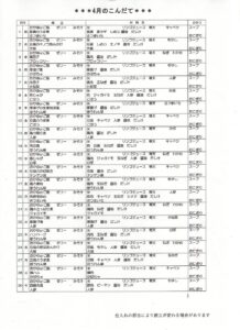4月の給食の献立と食材表です。