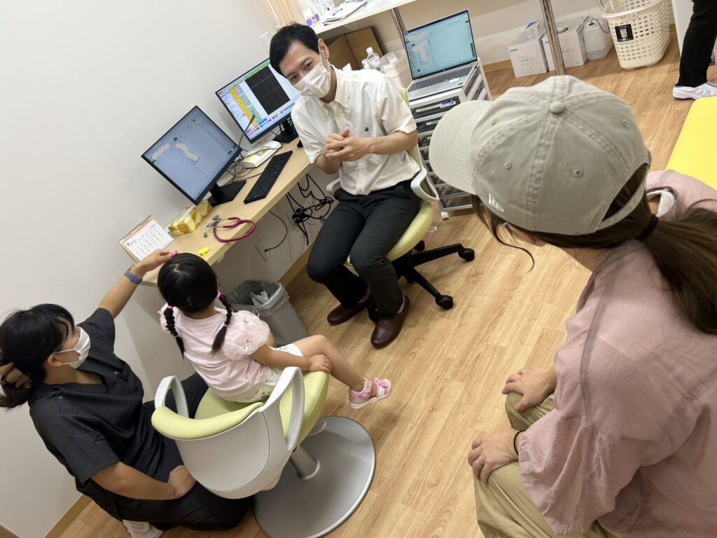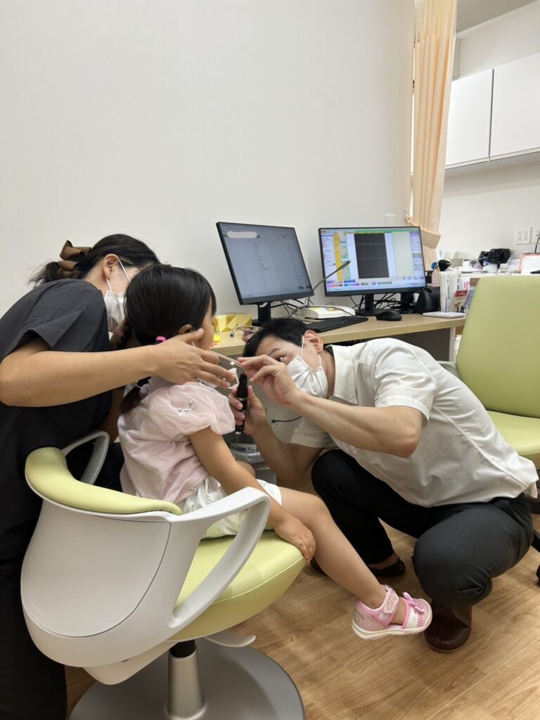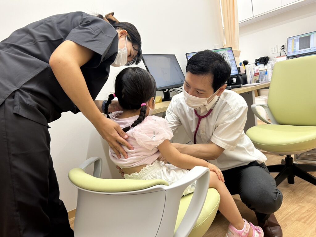 もちろん保護者さんのお膝の上での診察もOK。看護師さんがお手伝いするので、お子さんが安心できる体勢で診察を受けましょう。