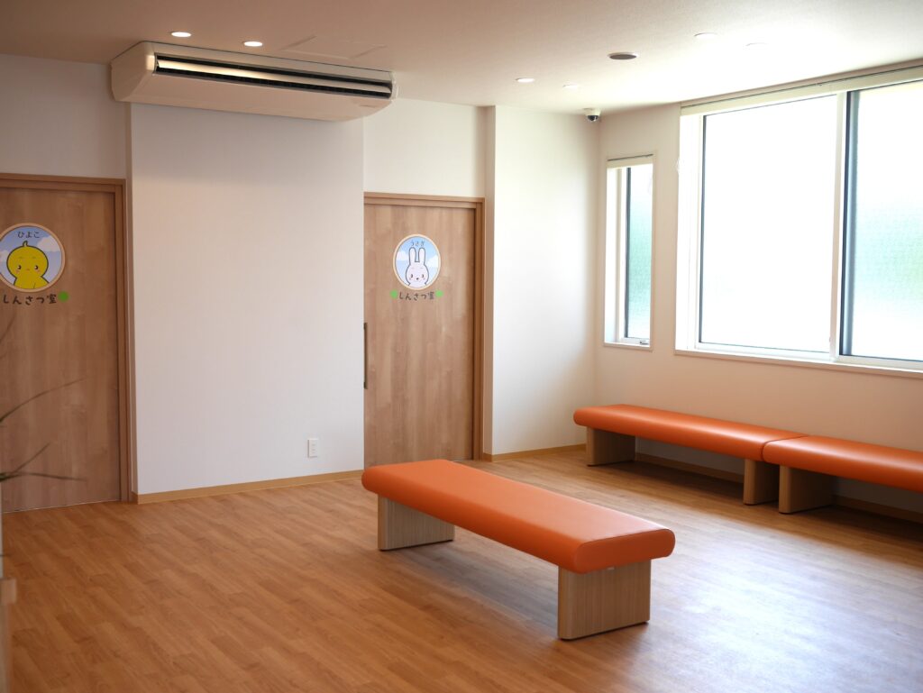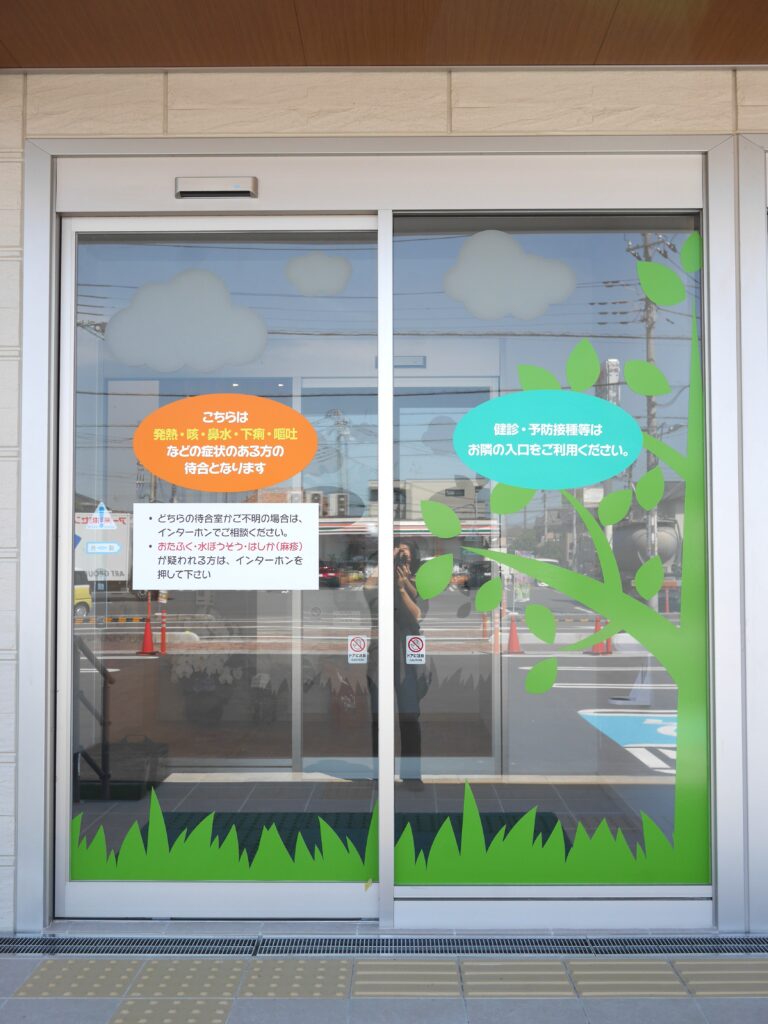 健診や予防接種等での来院の方は右側の出入口からお入りいただき、待合室でお待ちください。
