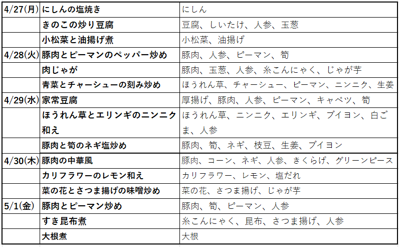 確認したい日のメニューが掲載されていない場合は、病児保育室(048-966-2600)までお願いします。